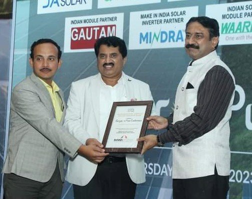 सौर ऊर्जा निर्मिती प्रकल्पांना वेग देण्यासाठी सुरु असलेल्या उल्लेखनीय कामगिरीबद्दल महावितरणसह पुणे परिमंडलाचे मुख्य अभियंता श्री. राजेंद्र पवार व पुणे लघु प्रशिक्षण केंद्राचे समन्वयक डॉ. संतोष पटनी यांना पुणे येथे आयोजित ‘सूर्याकॉन’ परिषदेमध्ये गौरविण्यात आले.