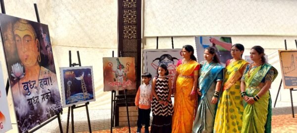 युक्रेन-रशिया युद्ध थांबवा, अफगाणिस्तान-तालिबान विषय, झाडे लावा – झाडे जगवा आदी सामाजिक प्रबोधन करणाऱ्या विषयांवर लावण्यात आलेल्या २० हुन अधिक प्रिंट स्वरूपातील चित्रांनी वऱ्हाडी मंडळींवर मोहिनी घातली.याशिवाय कासव तसेच बैलगाडी या माध्यमातून शेतीचा संदेशही देण्यात आला.सांस्कृतिक भवनात प्रवेश करतानाच सर्वप्रथम हे प्रदर्शन पाहूनच वऱ्हाडी मंडळी अक्षतेसाठी कार्यालयात पोहोचली. दिवसभर हजारो वऱ्हाडी मंडळींनी या प्रदर्शनाचा लाभ घेतला तर पोस्टर आणि बैलगाडीसोबत सेल्फी घेण्यासाठी वऱ्हाडीची रीघ लागली होती.चित्रकार सचिन खरात यांनीसुद्धा या चित्रांचे महत्व सर्वांना पटवून सांगितले.