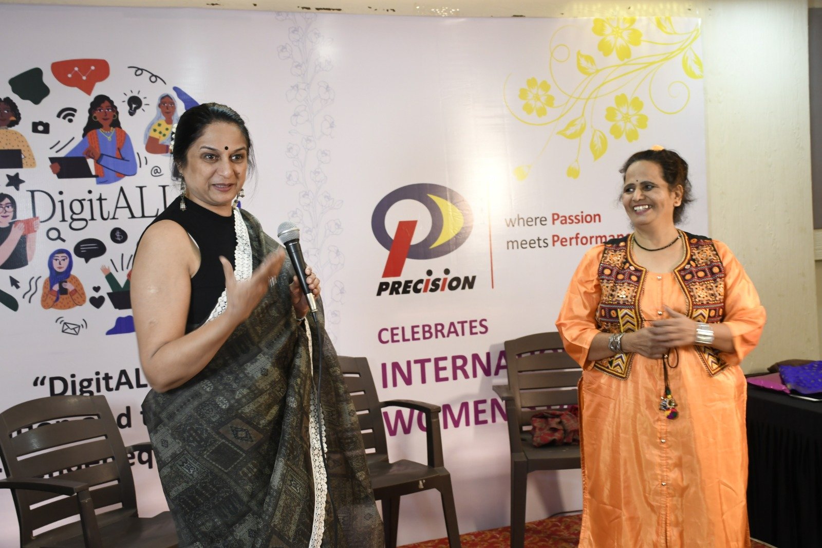 Pकार्यक्रमाच्या शेवटी प्रिसिजन फाऊंडेशनच्या अध्यक्षा डॉ सुहासिनी शहा यांनी कलाकार मृदुला मोघे यांचा सत्कार केला व त्यानंतर उपस्थित कपंनीतील महिला अधिकारी व कर्मचारी यांच्याशी संवाद साधला. डॉ. सुहासिनी शहा बोलताना यावर्षीच्या महिला दिनानिमित्त जागतिक स्थरावर ठरलेल्या थिमबद्दल “डिजिटल युगात लैंगिक समानतेसाठी संशोधन आणि तंत्रज्ञान ” त्यांनी माहिती दिली. भेदभाव मुक्त समाज निर्माण करणे तसेच सध्याचा काळ हा डिजिटल क्रांतीचा आहे. डिजिटल युगात लैंगिक समानता निर्माण करणारे संशोधन यावर भर द्यावा. असे त्यांनी सांगितले.