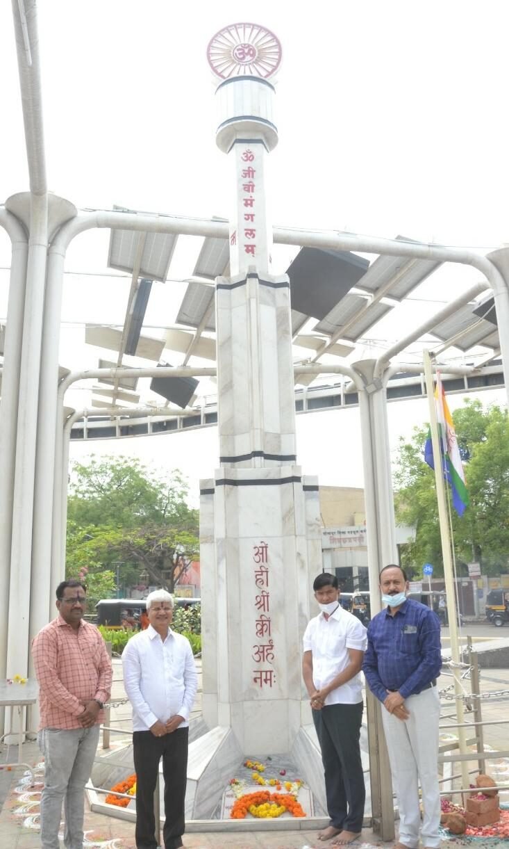 सोलापूर महानगरपालिकेच्या वतीने पूज्य भगवान श्री महावीर यांच्या जयंती दिनानिमित्त रंगभवन चौक येथील भगवान महावीर स्तंभास तसेच जुना होटगी नाका येथील भगवान महावीर चौक येथील भगवान महावीरांच्या नामफलकास प्रशासक तथा महापालिका आयुक्त पि. शिवशंकर यांच्या हस्ते पुष्पहार अर्पण करून अभिवादन करण्यात आले.