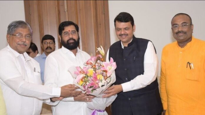 गेल्या आठ-दहा दिवसापासून सुरू असलेल्या राजकीय नाट्यावर आज पडदा पडला असून मुख्यमंत्रीपदी भाजपाचे देवेंद्र फडणवीस पुन्हा येणार पुन्हा येणार याची चर्चा सुरू होती. परंतु, त्या सर्व चर्चेंना छेद देत माजी मुख्यमंत्री देवेंद्र फडणवीस यांनी मुख्यमंत्रीपदी एकनाथ शिंदे यांच्या नावाची घोषणा पत्रकार परिषदेत केली.